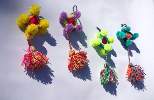 Colorful Huichol Threaded Pencil Poms - Extra Small