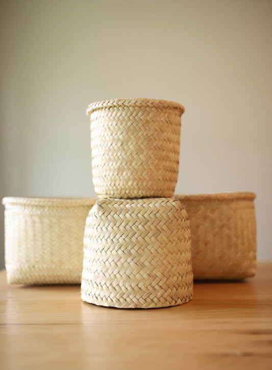 Handwoven Natural Palm Basket-Planter